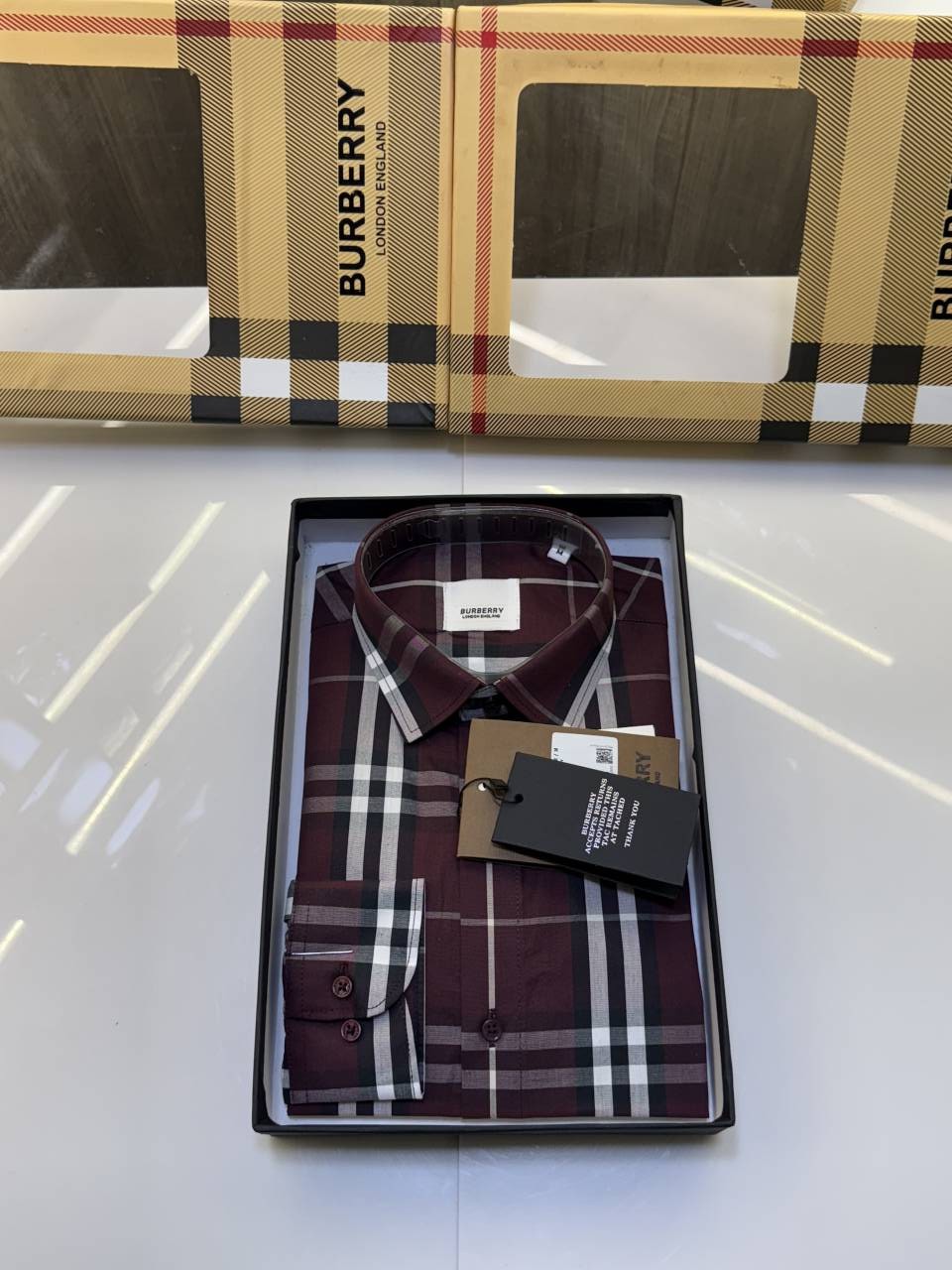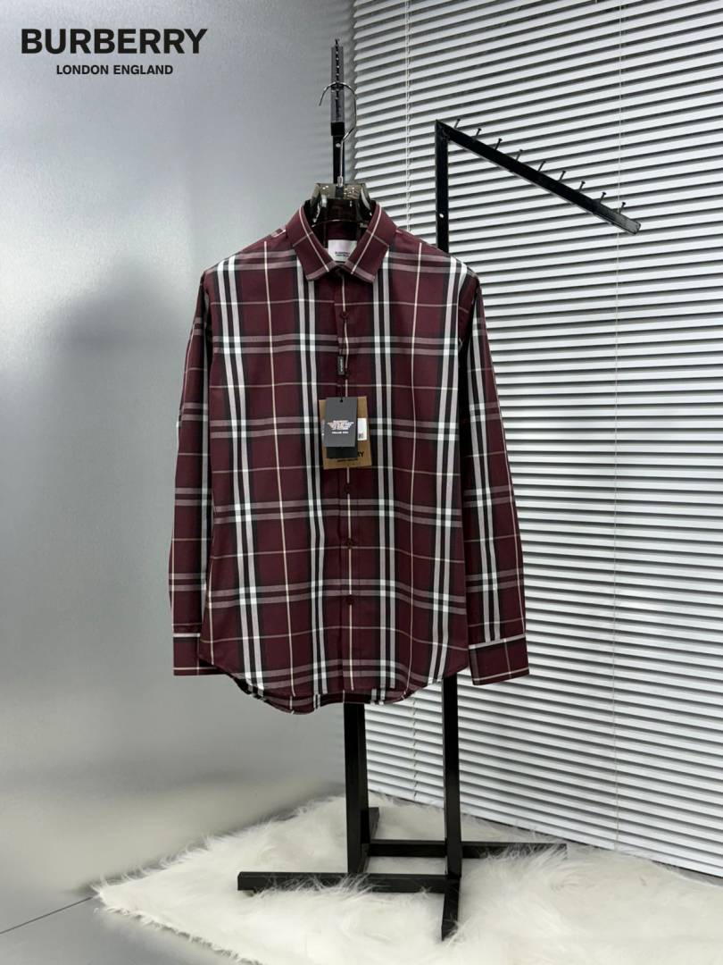 Burberr y Checks Premium Store article Shirt with Original Box (Maroon)